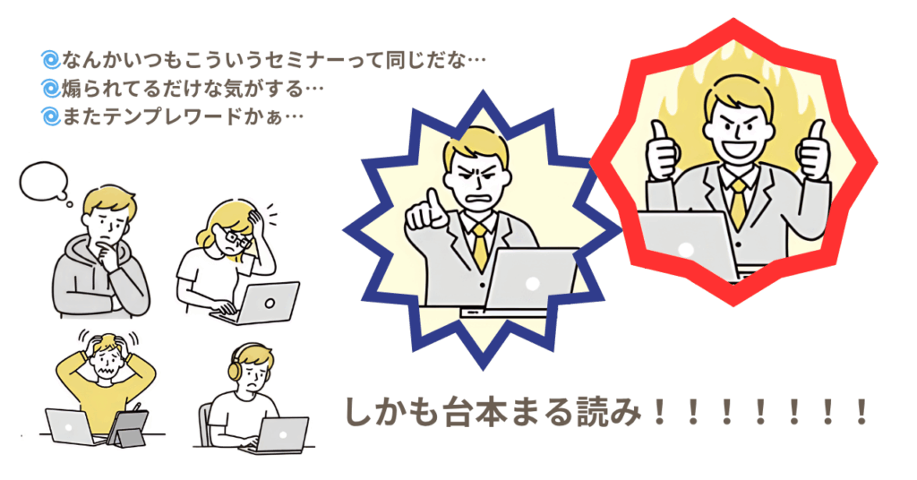 しかも「あるあるなテンプレセミナー台本まる読み」だったり…